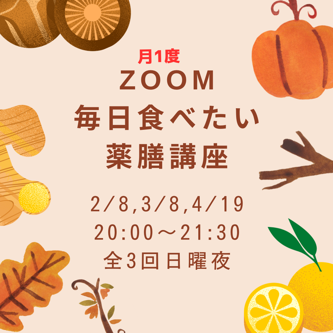 2026年2月,3月、4月の日曜夜3回です。 楽しいですよー。携帯からの参加もできるので気軽に薬膳を勉強しましょう。 詳しくはこちら https://yojo-kanpo.com/%e6%af%8e%e6%97%a5%e … 続きを読む