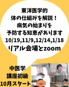 10月から初級スタートします。 開催決定しました!ご希望の方はご連絡ください,楽しいですよ。 内容詳細はこちら https://yojo-kanpo.com/%e4%b8%ad%e5%8c%bb%e5%ad%a6%e5% … 続きを読む